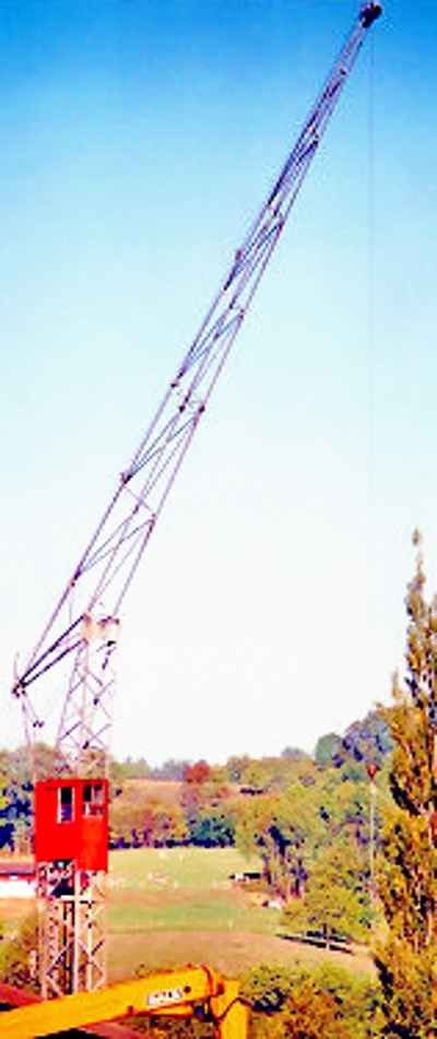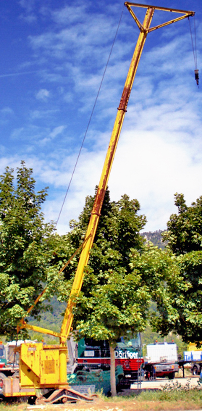Brun Kleinkran mit verlängertem Mast. |