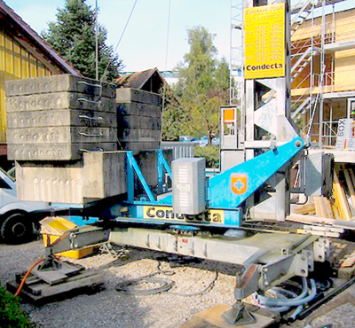 Condecta Kompaktkran 4020 in Gelb in Schaffhausen (CH). Bauunternehmung Gabl AG. |