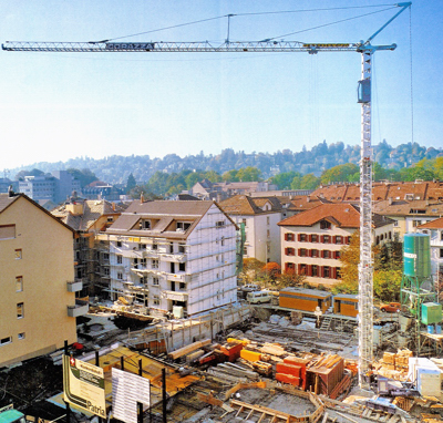 Condecta Kompaktkran 4020 in Winterthur (CH). Auf der linken Seite steht ein Swiss-Crane TKF 375. |