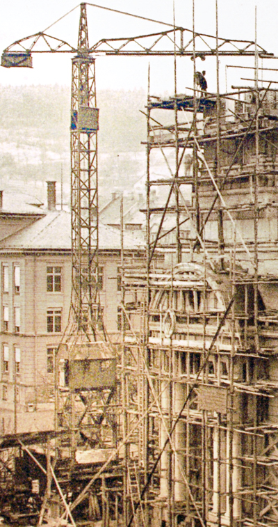 Grüring-Dutoit beim Bau eines Wasserturms in Bruderholz (CH). |