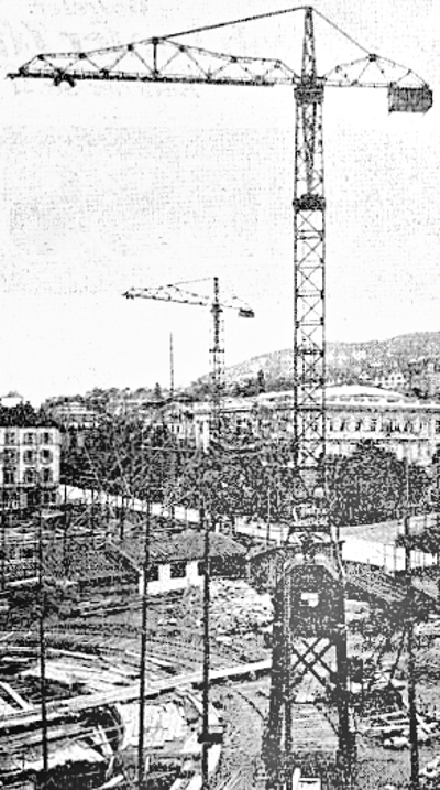 2 Grüring-Dutoit bei der technischen Hochschule in Zürich. Auf einer kreisrunden Schienenfahrbahn. Bauunternehmer Fietz & Leuthold. |